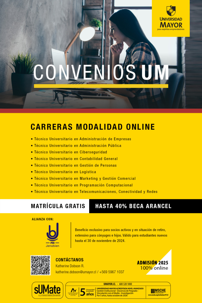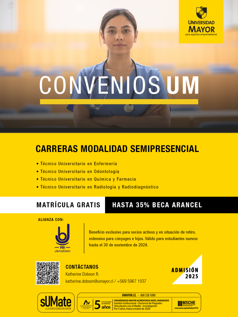 Atención, socios Jenabien: ¡tenemos una noticia fantástica para ustedes! Pueden acceder a una beca de hasta el 50% de descuento en carreras vespertinas, semipresenciales y online en la Universidad Mayor, inscribiéndose hasta el 30 de noviembre.