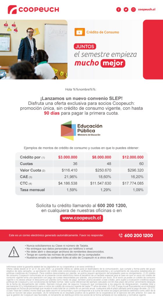 • Disponible para quienes no tengan crédito de consumo vigente.