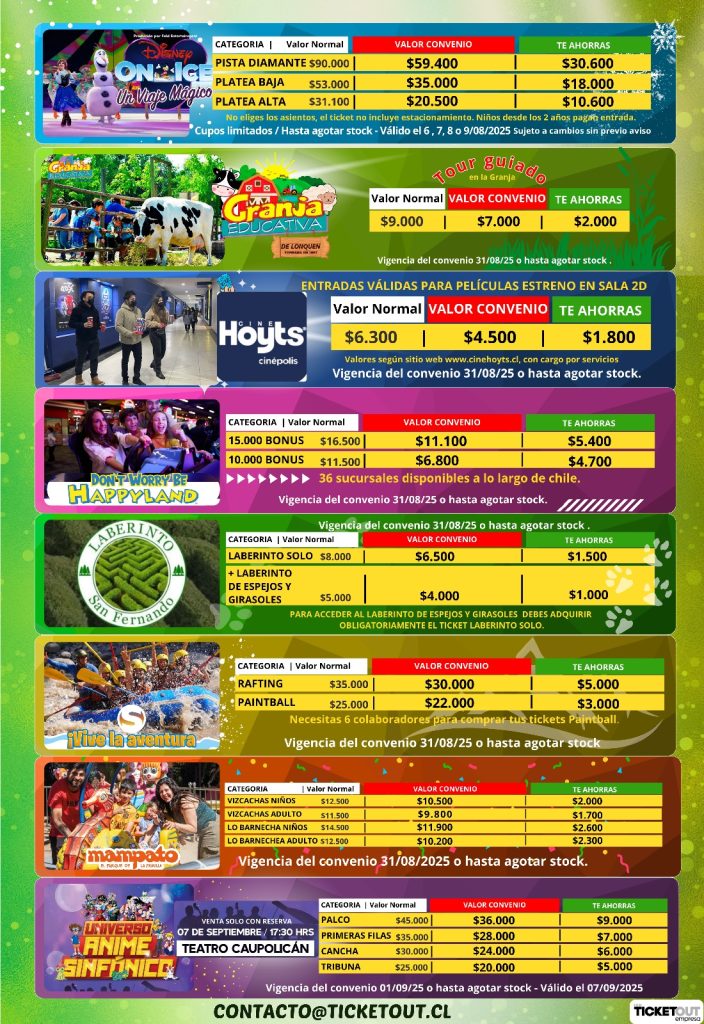 Revisa los afiches a continuación para conocer todos los detalles y precios especiales disponibles.