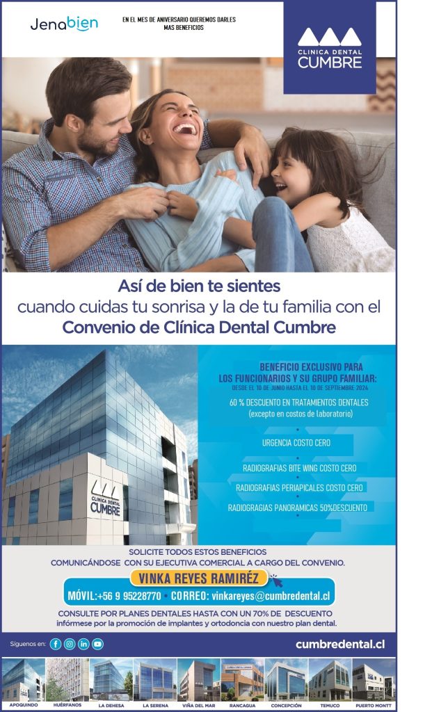 Porque sabemos lo importante que es cuidar su salud dental, Jenabien y Clínia Dental Cumbre te ofrecen grandes descuentos para que ahorrar sea parte fundamental durante este mes.