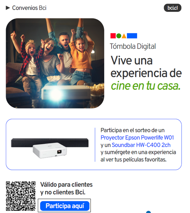 ¡Convierte tu hogar en un cine con BCI! BCI está llevando la experiencia del entretenimiento a otro nivel con el sorteo de un proyector Epson. ¿Lo mejor? Este concurso está abierto tanto para clientes como para quienes aún no lo son. Es tu momento de hacer realidad ese sueño de tener un cine en casa.
