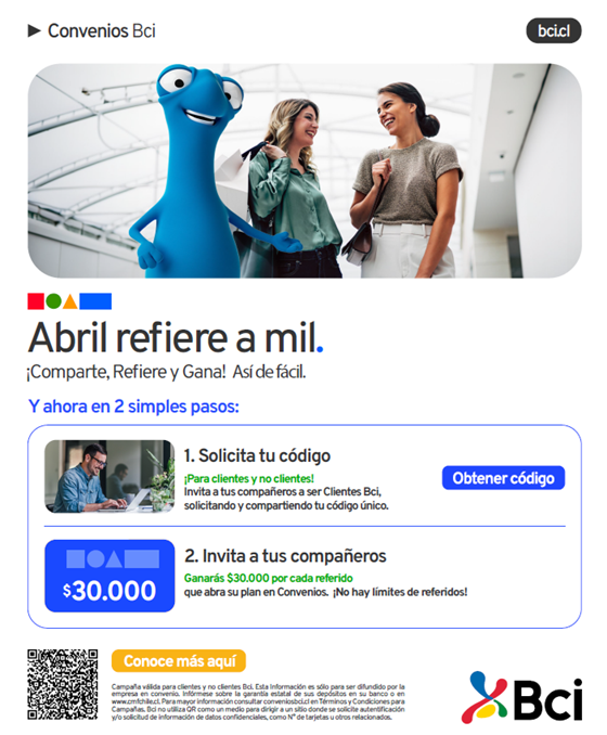 Campaña “Refiere y Gana” ¿Quieres ganar dinero de forma fácil? Aún estás a tiempo de participar en la campaña “Refiere y Gana”. Solo tienes que invitar a 2 compañeros (o más) y recibirás $30.000 por cada referido. Es una manera sencilla de aumentar tus ingresos y compartir los beneficios con otros.