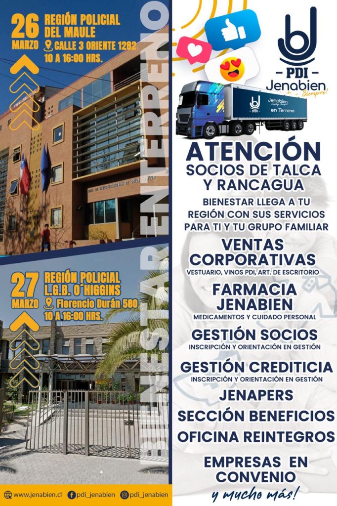 La segunda visita del año tiene lugar hoy miércoles 27 de marzo, en la Región Policial del Libertador Bernardo O’Higgins, donde contaremos con los mismos servicios ya mencionados.