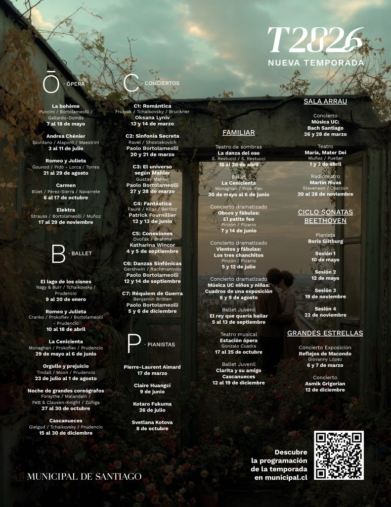 Una oportunidad única para disfrutar de lo mejor del repertorio lírico mundial en el corazón de Santiago, donde además te compartimos sus su cartelera 2026.