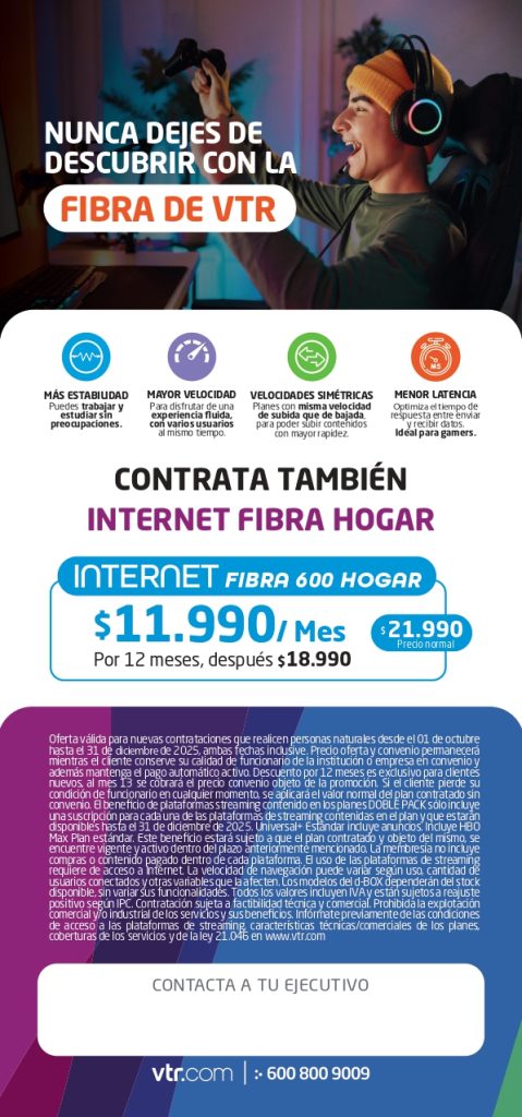 Para quienes buscan una experiencia aún más completa, está disponible el Doble Pack Premium Fibra 600 Hogar, que ofrece los mismos beneficios de conectividad, pero con acceso a Stream TV Premium y un d-BOX Smart. Este plan, normalmente valorado en $46.990, podrá contratarse por $28.990 mensuales durante 12 meses.