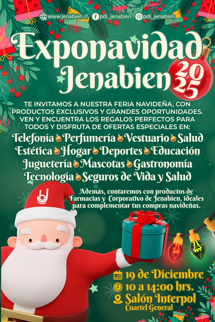 Jenabien se prepara para celebrar las festividades con una nueva edición de Exponavidad, la cual tendrá lugar el próximo 19 de diciembre en el Salón Interpol del Cuartel General. Esta feria navideña ha sido pensada como un espacio único para que nuestra comunidad pueda acceder a productos exclusivos y aprovechar grandes oportunidades en un ambiente festivo y cercano.