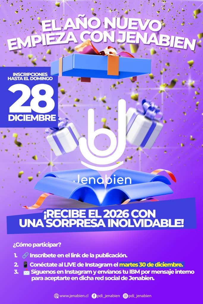 No necesitas más que tus ganas de ser parte de esta celebración y dejar que Jenabien te acompañe en el inicio de un nuevo año.Así que no lo pienses demasiado: inscríbete, acompáñanos en el live y prepárate para recibir el 2026 con sorpresas y alegría. Porque en Jenabien, siempre volvemos con más para ti.