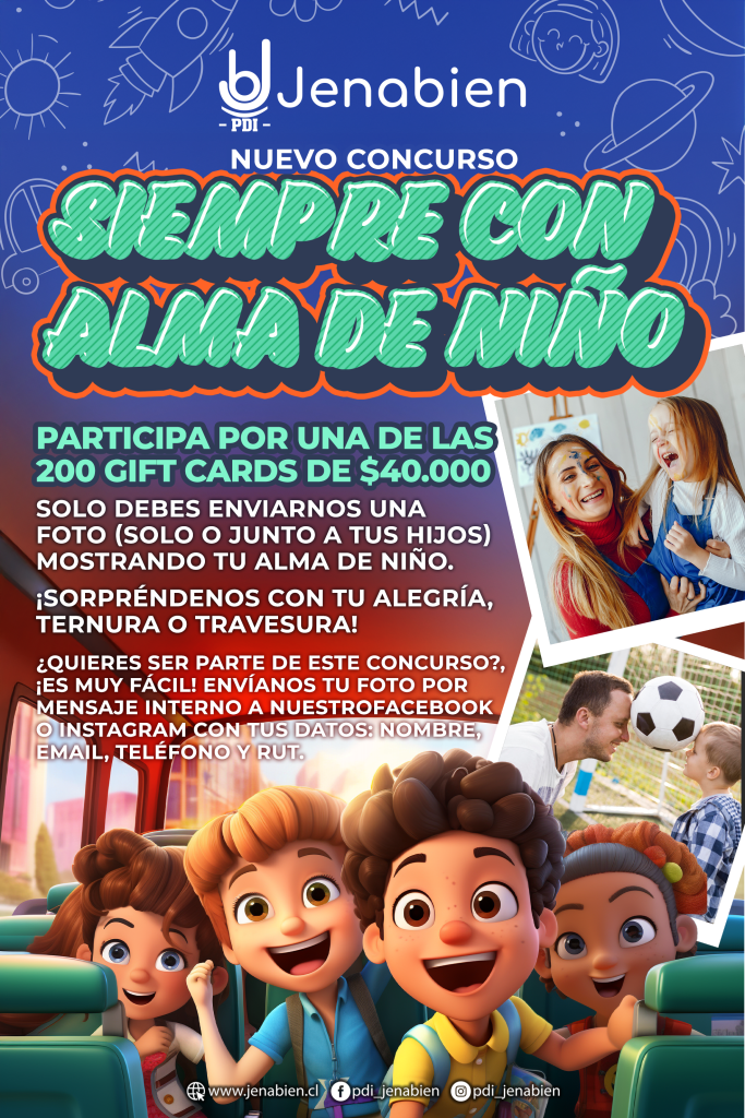 ¡Celebramos el Día del Niño a lo grande! En Jenabien estamos regalando 200 Giftcards de $40.000 pesos para que muchas familias puedan disfrutar esta fecha tan especial.