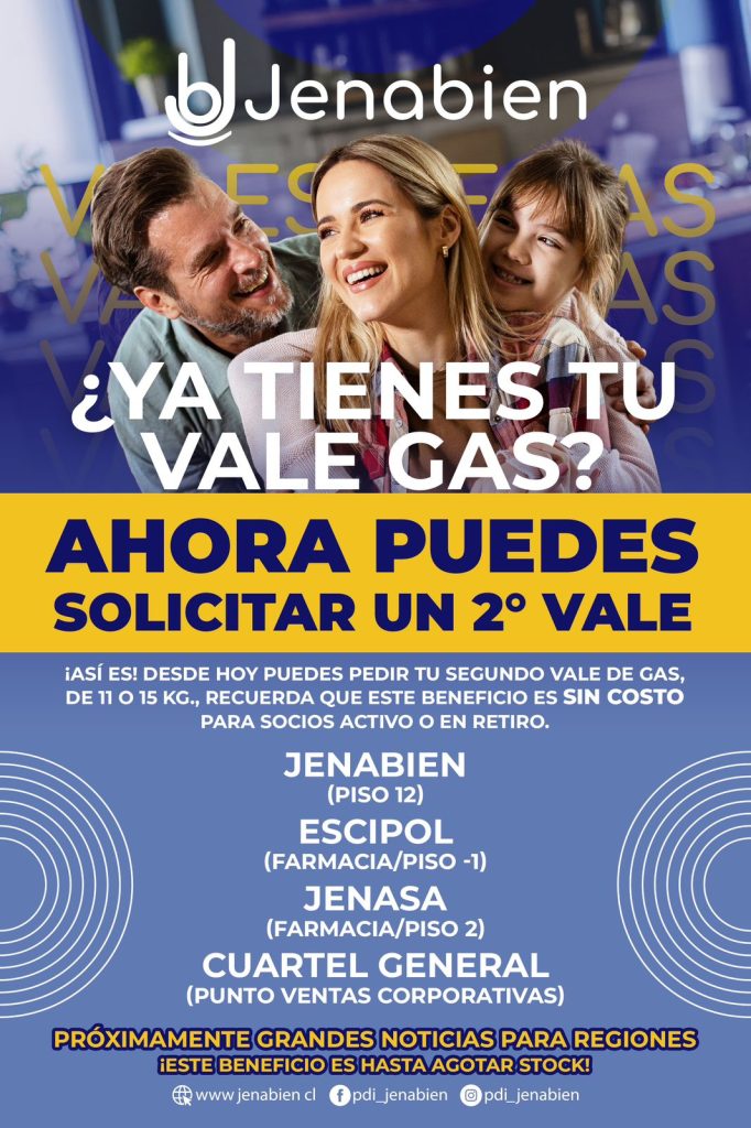 Atención socios y socias: Ya está disponible el retiro de un segundo vale de gas en nuestros puntos de venta corporativos ubicados en el Cuartel General, Jenasa, Jenabien y la Escuela de Investigaciones. Este beneficio se entregará hasta agotar stock.