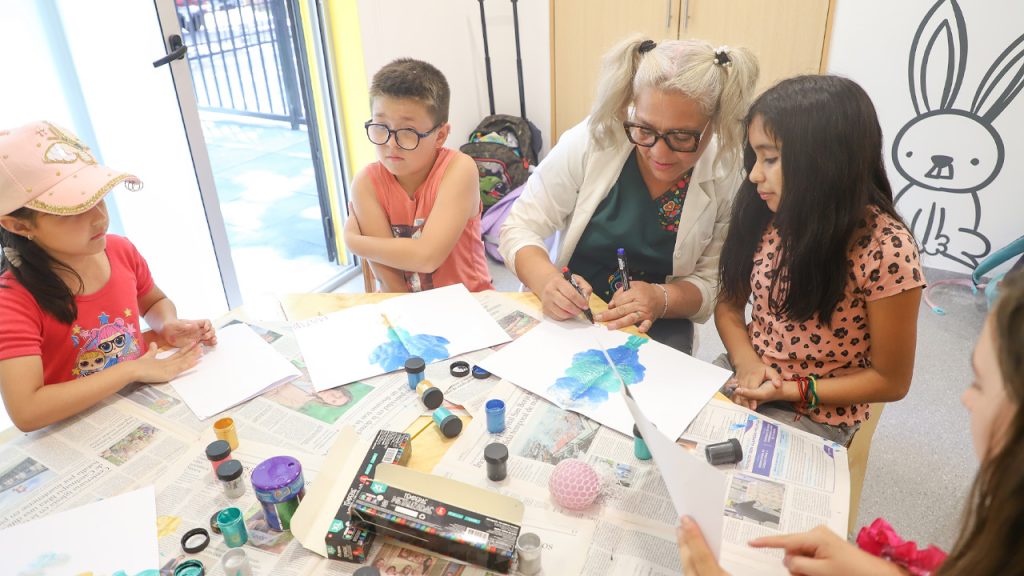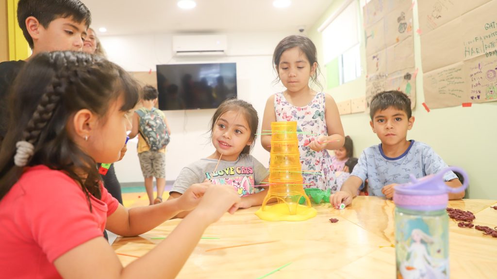 Cada semana los hijos e hijas de nuestros socios realizan múltiples dinámicas, como la creación de un estudio de televisión en el taller de periodismo. Asimismo, interesantes experimentos científicos con pintura y luces, e incluso refrescantes juegos con agua.